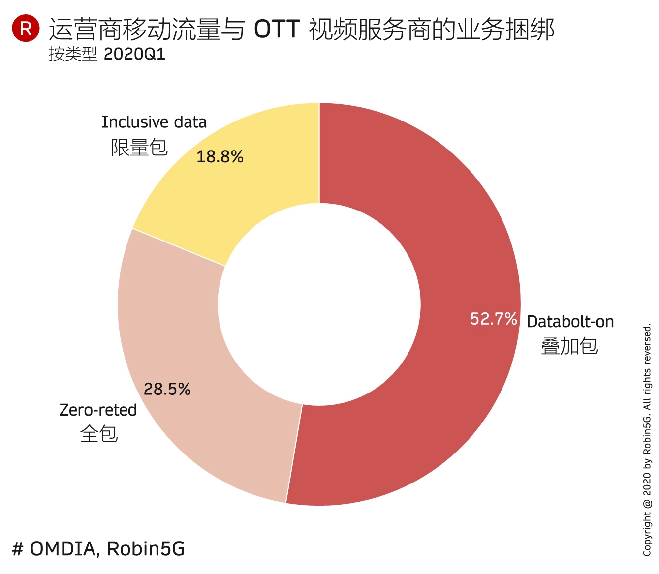 (2) 叠加包(Data bolt-on):运营商额外销售的数据包,包含了某个 OTT 视频业务的资费。