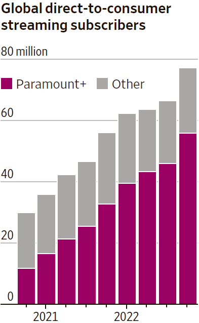 但影视剧长视频不是这样,至少不完全是这样。以派拉蒙电影公司为例,其旗下流媒体服务 Paramount+ 正在取得高速的用户发展,2022Q4 其付费订阅用户增长到了 990 万户。