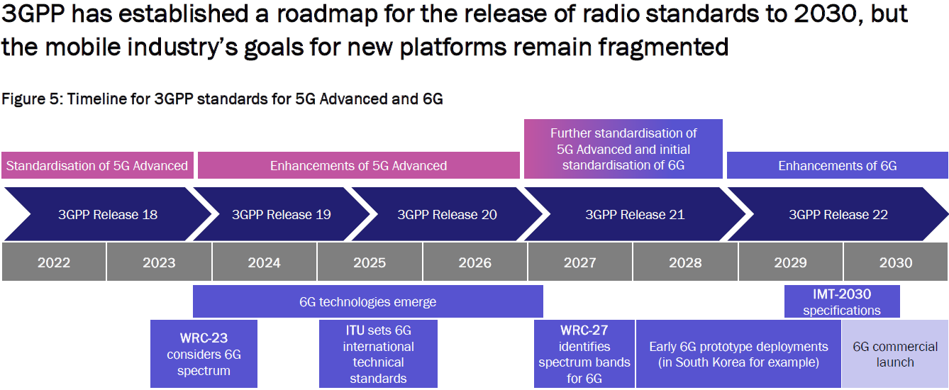 Spirent 绘制了一张很丰富的图,展示了 5G 从 2020 到 2030 这十年主要的里程碑预期。