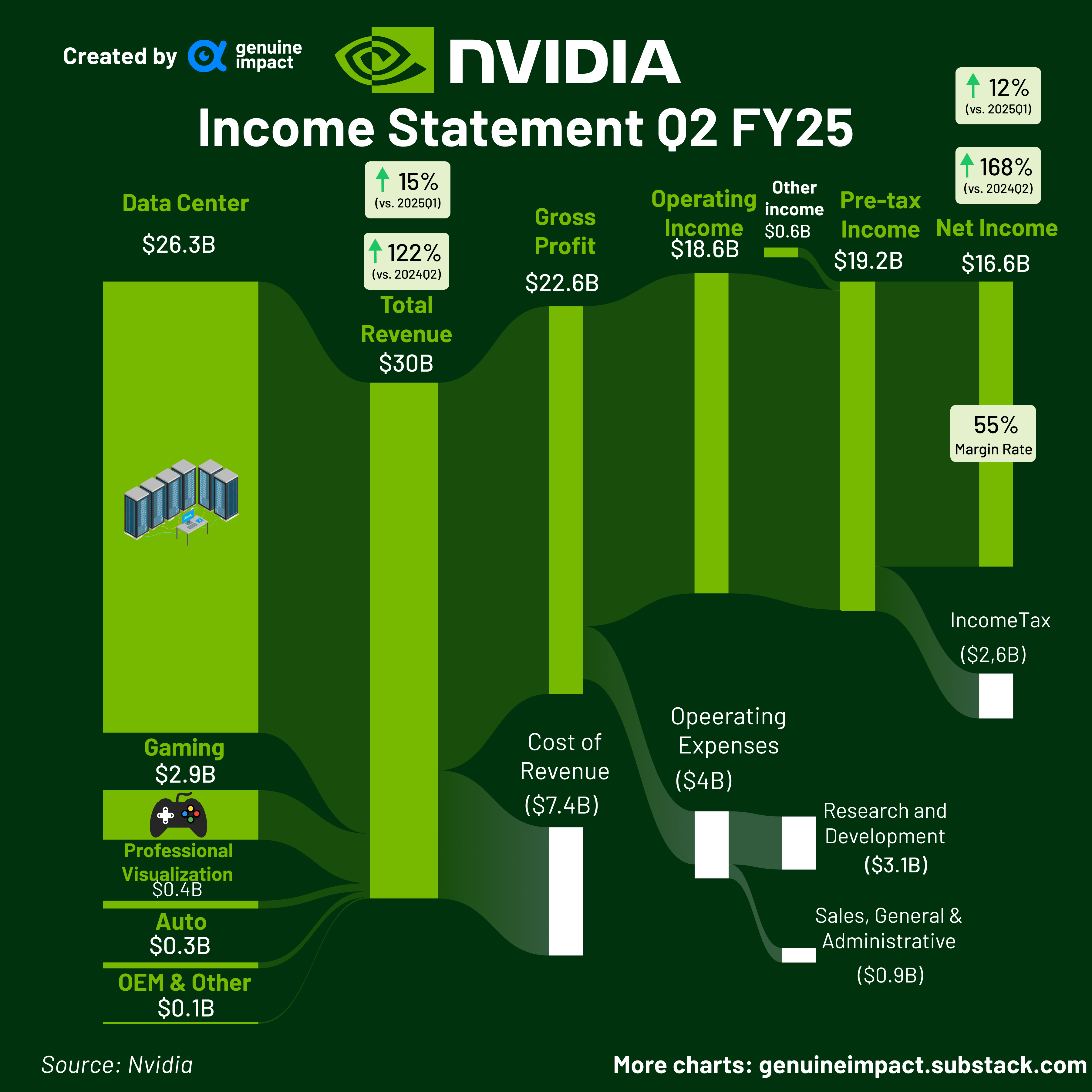 APP Economy Insights 基于英伟达 Nvidia 2023 财年 Q3 的指标,将其损益表进行了可视化呈现。