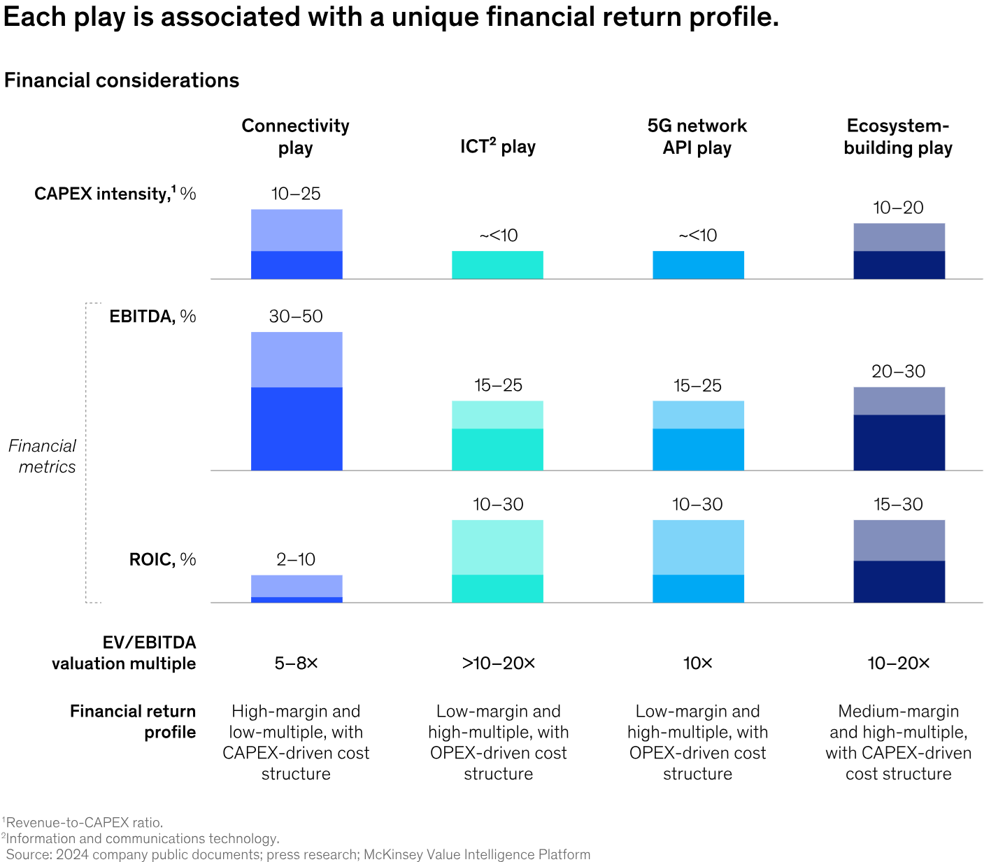 Mckinsey 认为电信运营商在企业市场的业务发展可归为四大类:(1) 网络连接;(2) ICT 信息化服务;(3) 5G 网络能力开放 API;(4) 垂直行业生态系统运营。