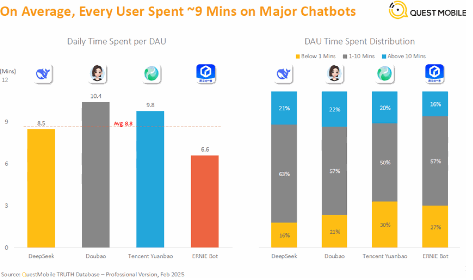 QuestMobile 的数据监测显示,DeepSeek 的日活跃用户在1月28日首次超越豆包,随后在2月1日突破 3,000 万大关。