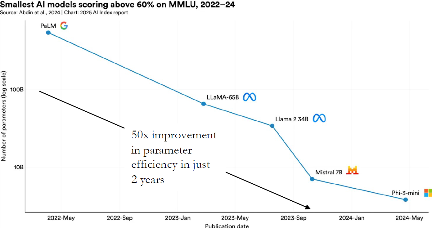 当前,30 亿参数的 “小模型“ 的性能已经达到最开始 ChatGPT 所使用的 1750 亿参数模型的效果。这得益于更好的压缩技术(distillation 蒸馏、quantization 量化等),以及更高质量的训练数据。