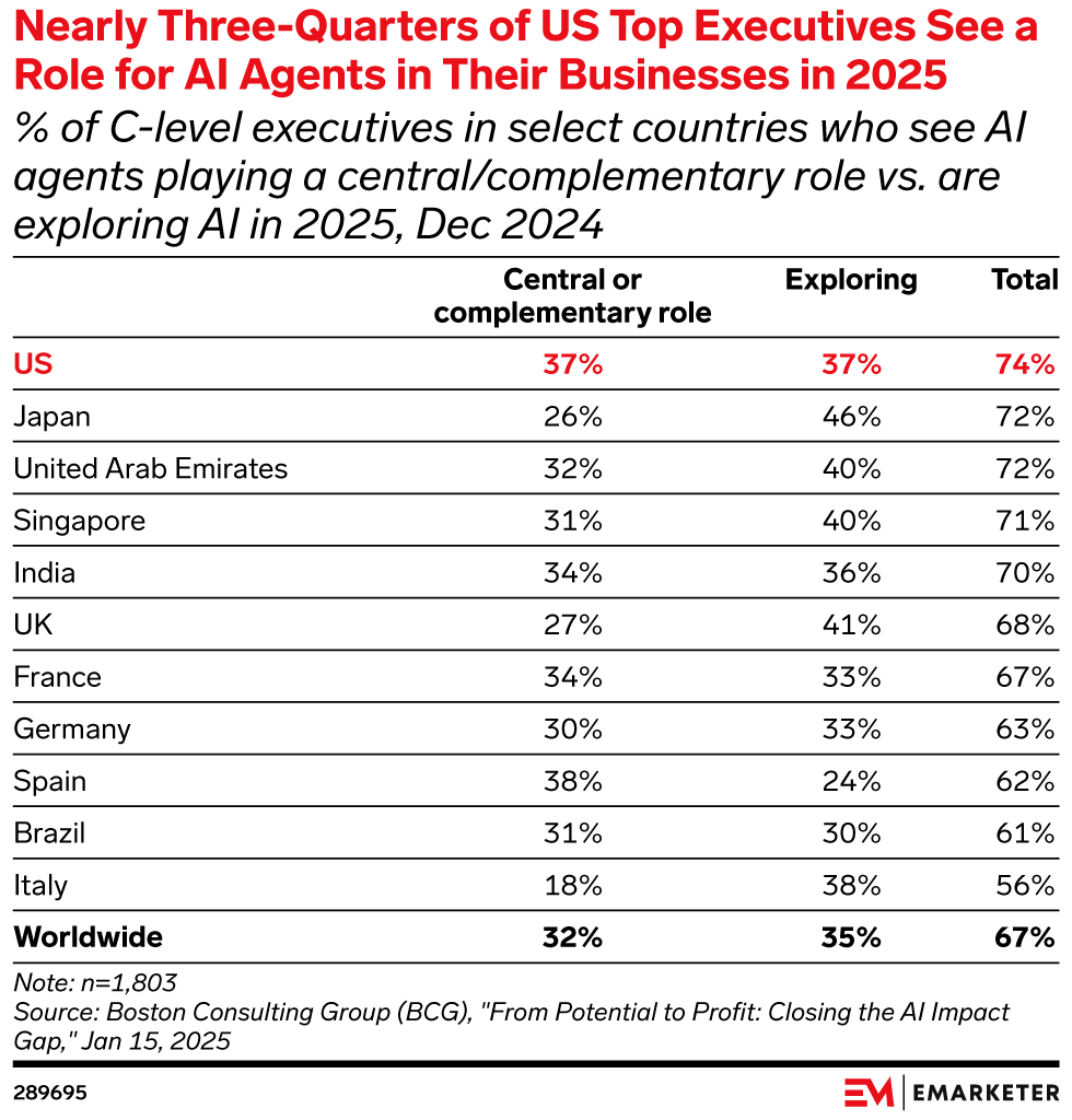还有一个有趣之处,74% 的 CEO 认为其团队具备成功采用生成式 AI 所需的技能,但只有 29% 的其他高管同意这个观点。