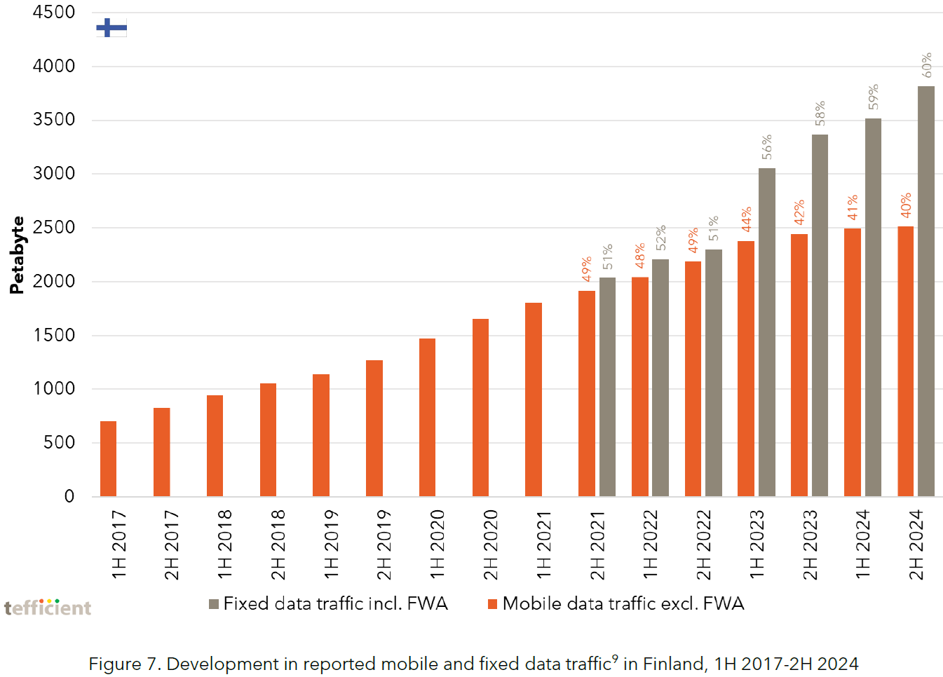 Telenor 1,000 Mbps 光纤宽带(1,299 挪威克朗/月)只比 500 Mbps 的 5G FWA (1,249 挪威克朗/月)价格高 4%。