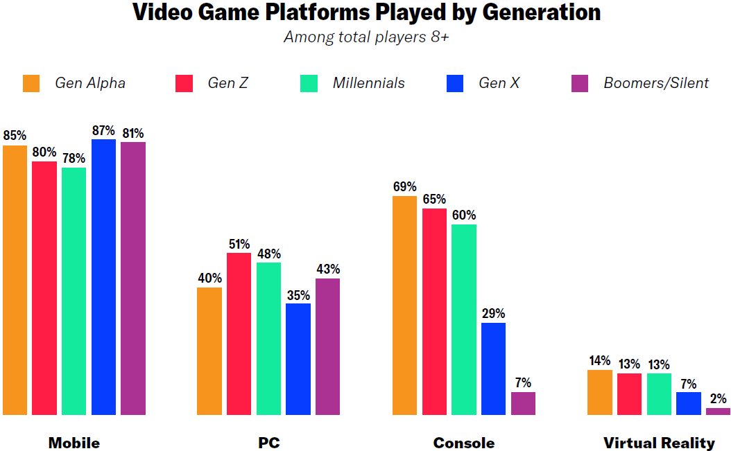 从年龄分布看,专业游戏站点、付费电视和流媒体基本分布趋同。