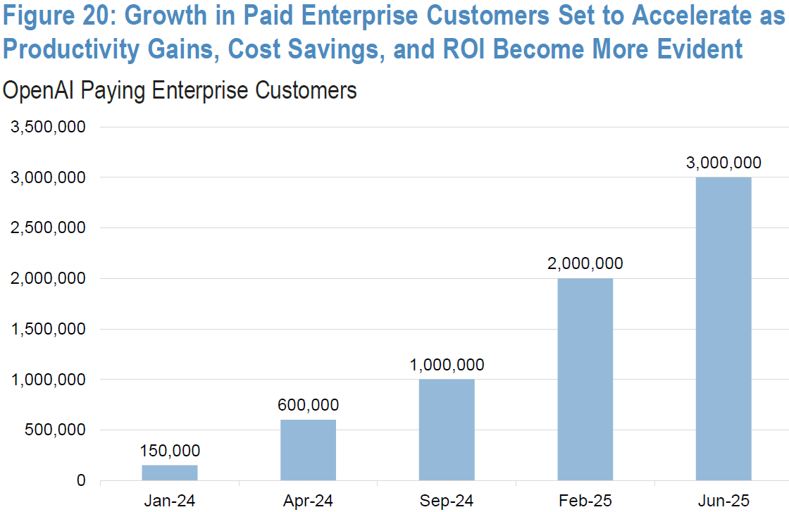 而 OpenAI 目前的年化收入在 13 亿美元左右,比上面 3.5 亿美元要大得多。可以看出 ChatGPT 从消费者业务角度带给 OpenAI 的价值。