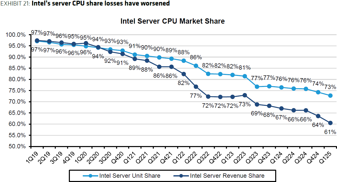 Intel 有一半的收入来自 PC 的芯片,营收自然受到很严重的影响,2022Q3 收入同比下降 20%。