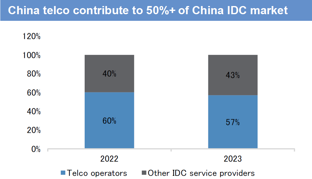 与美国市场不同,中国三大电信运营商是 IDC 市场重要参与者。
