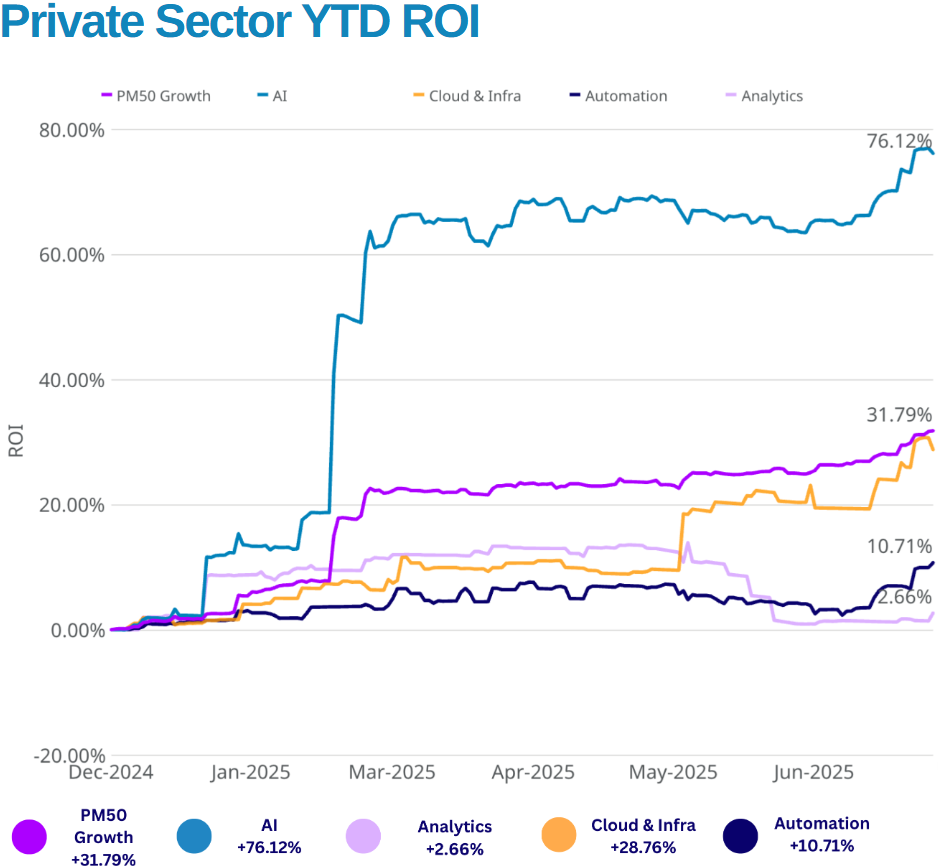研究机构 PM Insights 的 PM50 是其在二级市场(证券)提及最活跃的精选的 50 家未上市公司的名字。PM Insights 跟踪 PM50 这些大公司的投资回报率 ROI,并对比 S&P 500 ETF 等基金的表现。