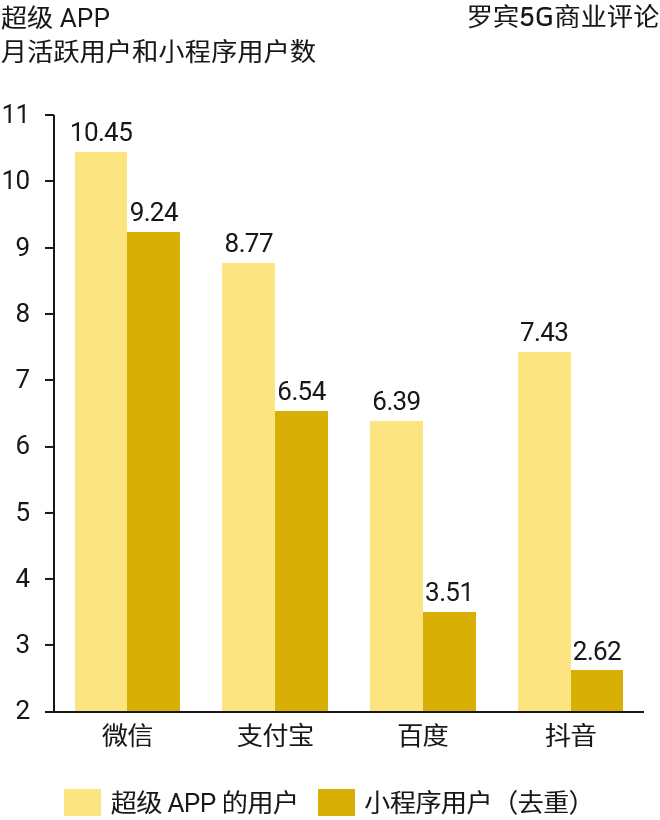小程序的普及,体现了一种超级 App 的概念;微信、支付宝在独立 App 之上构建了一种新生态。