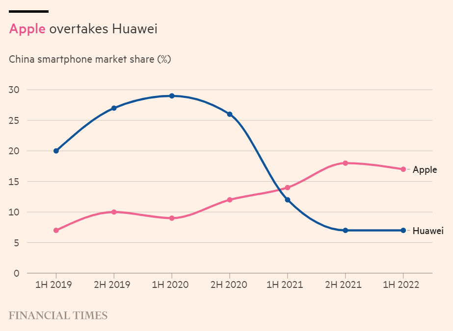 UBS 在 2022 年 5 月的报告,预计 2022 年全年 Apple 会获得 17% 的出货量和 45% 的收入份额。
