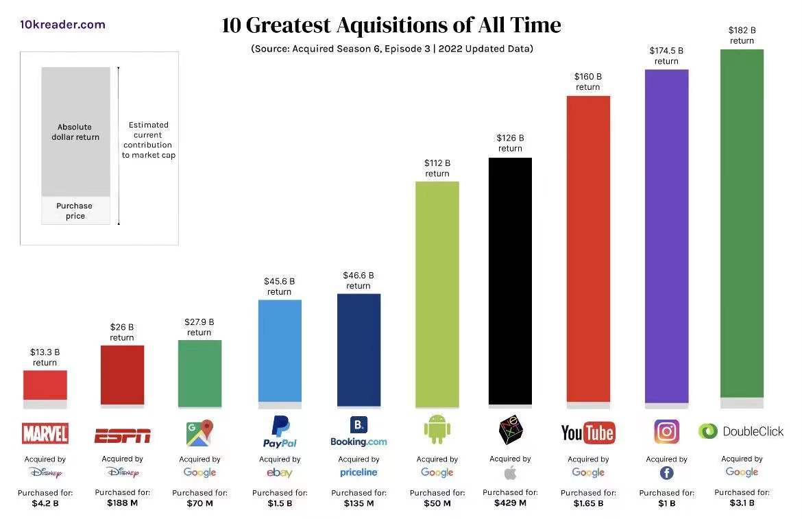 播客频道 Acquired Season 6 筛选了净收益最高的十大并购案。