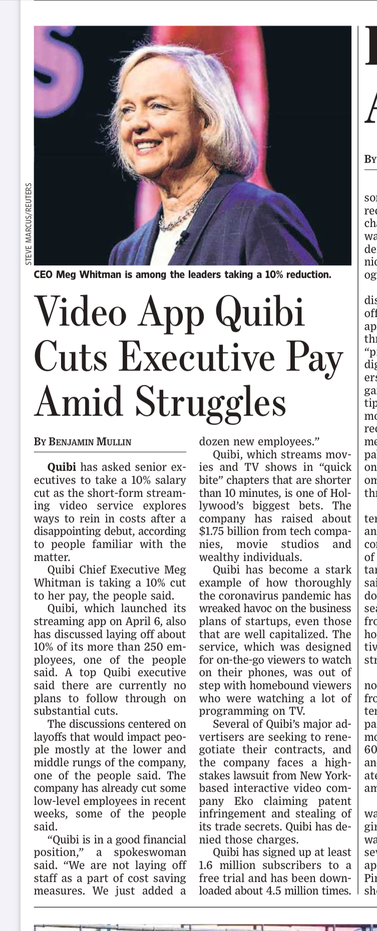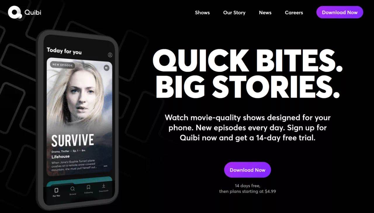 前梦工厂大佬卡森伯格的最新项目 Quibi,做美剧质量水准的短视频;每集5-15分钟的时长也瞄准当下的碎片化潮流。