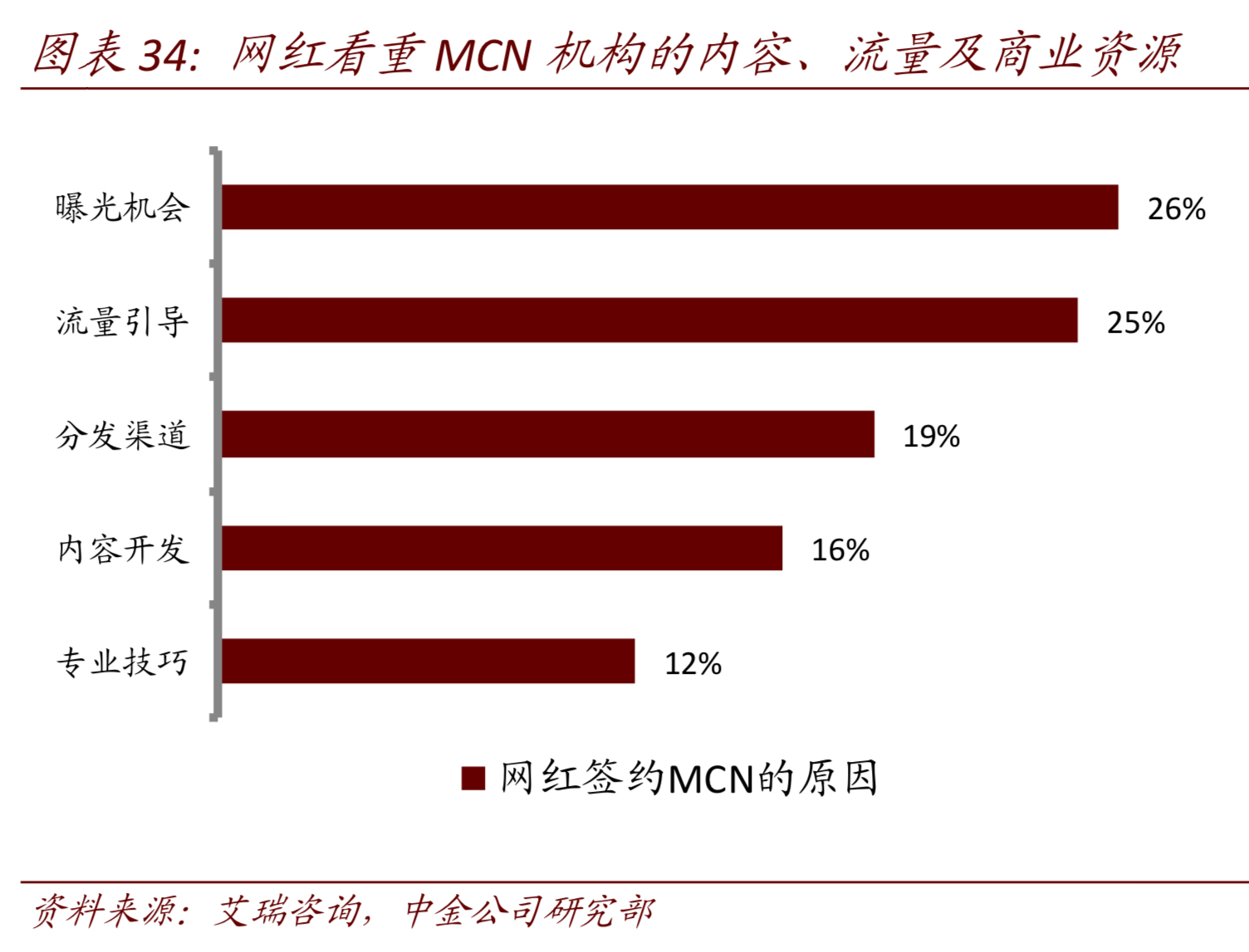 MCN(Multi-Channel Network),一种类中介和经纪公司,上游负责对接优质内容,为网红持续生产内容提供更多帮助,下游 则寻找推广平台,帮助网红变现商业价值。