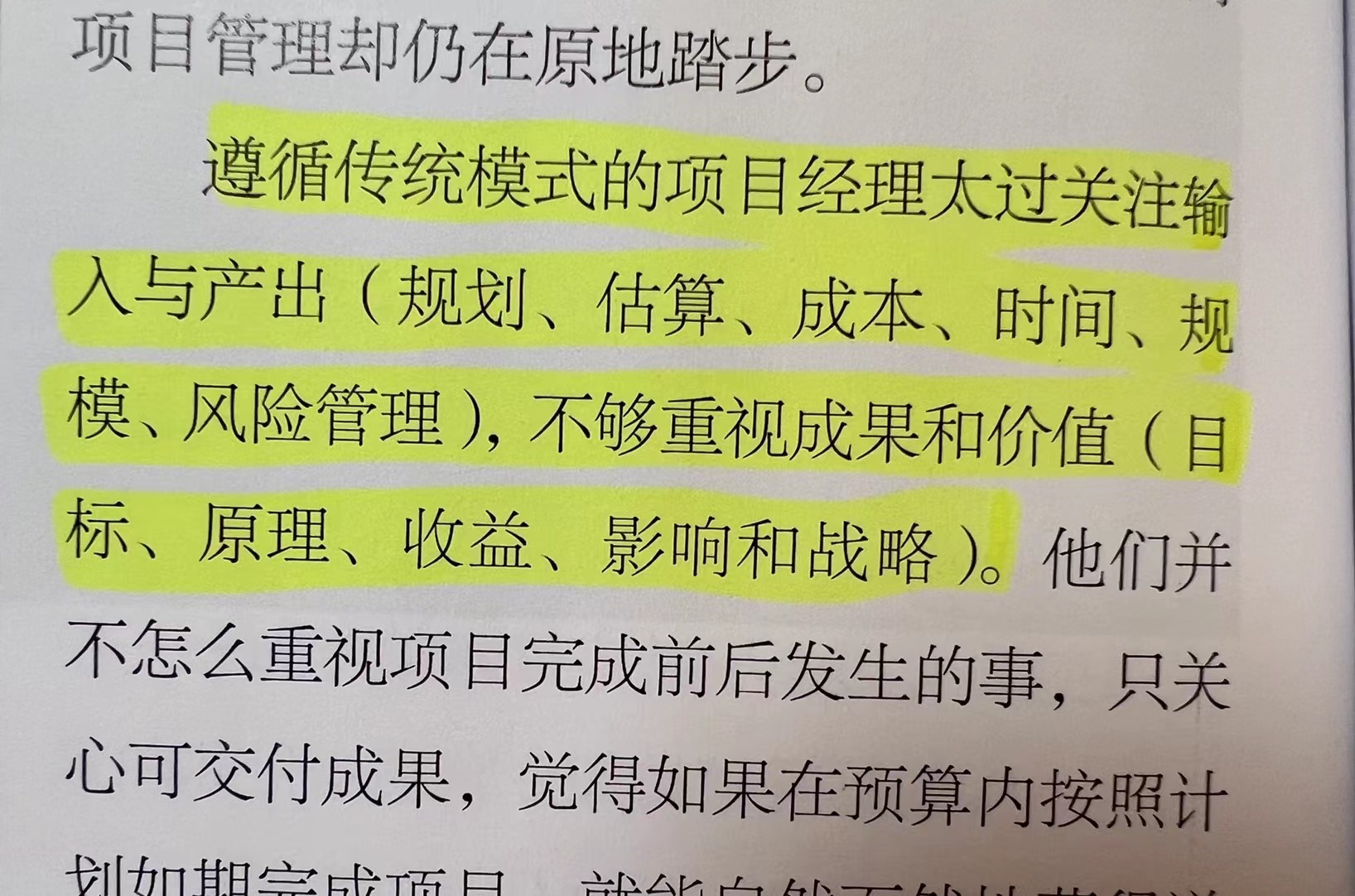 ④ 传统项目管理更在乎过程和准时交付,不够重视成果和价值;