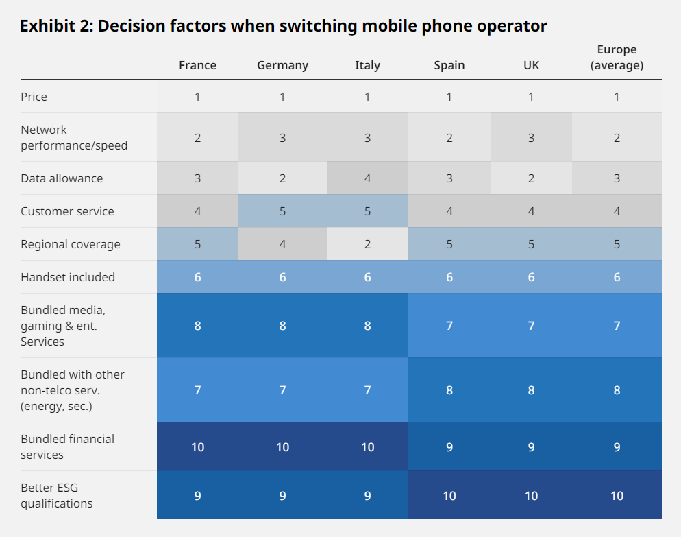 根据 Morgan Stanley 对美国消费者的调查,诸多因素中,最影响用户选择来自两个方面:(1) 网络速率;(2) 价格。