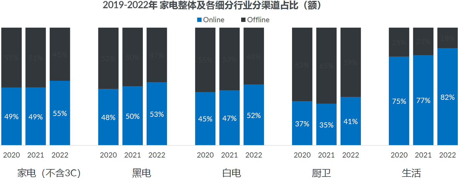 来自 GFK 的用户调研,用户购买大家电的渠道选择原因 Top 3:(1) 售后支持;(2) 安全服务;(3) 产品型号齐全;