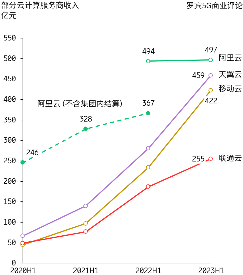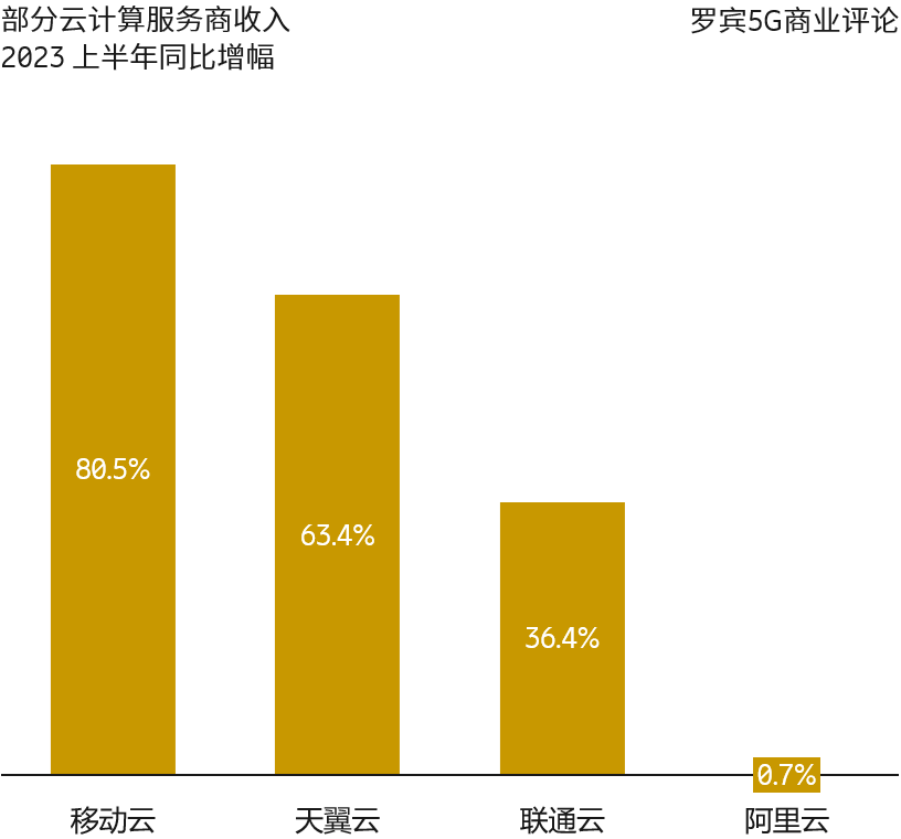 三大运营商的云服务已经相当有规模,2023 上半年三者之和达到创纪录的 1,136 亿元。