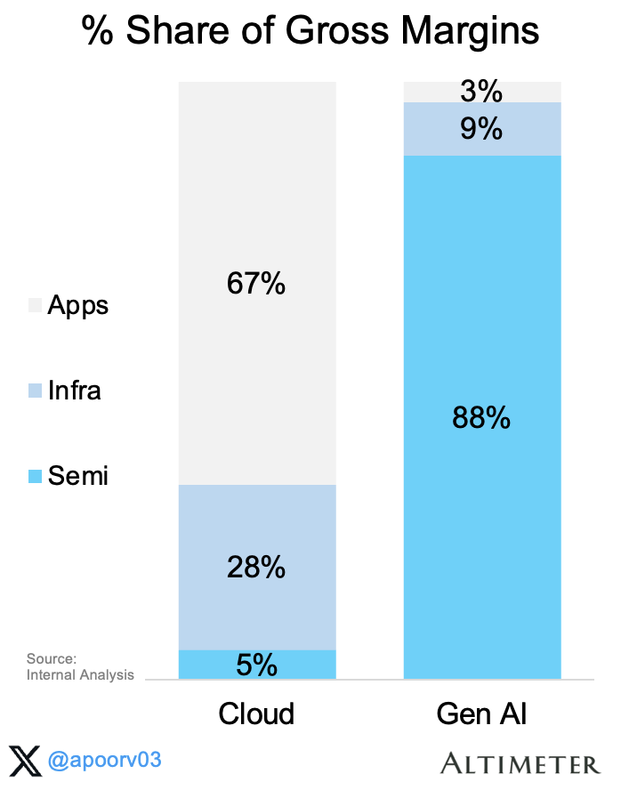 Sonata Insights 绘制了一张图,对比了 Google 搜索、YouTube、Amazon、Facebook 等 “站内搜索” 和生成式 AI(Perplexity、Coilot)的每用户搜索次数和活跃用户体量(MAU)。