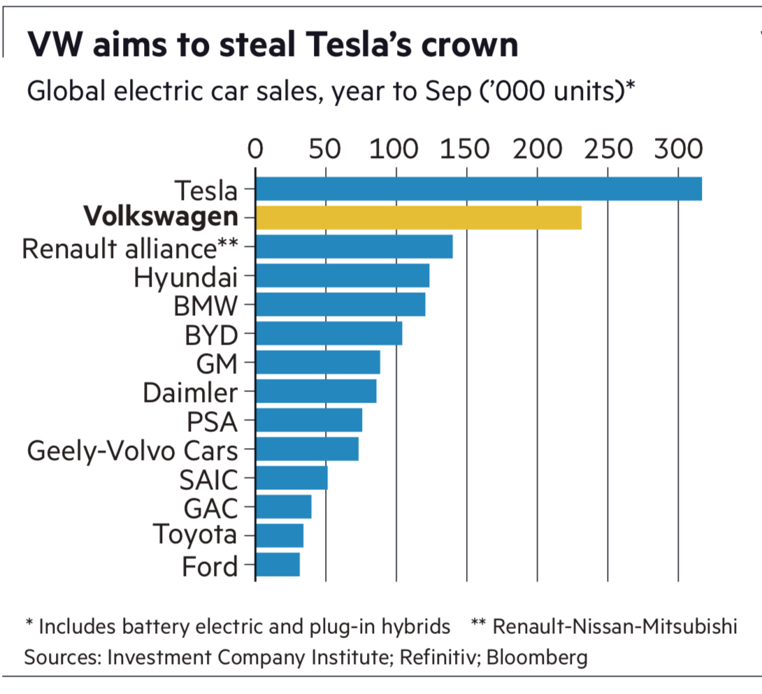 下图是截止到 2020年9月,主要车企的电动车销售量排名。