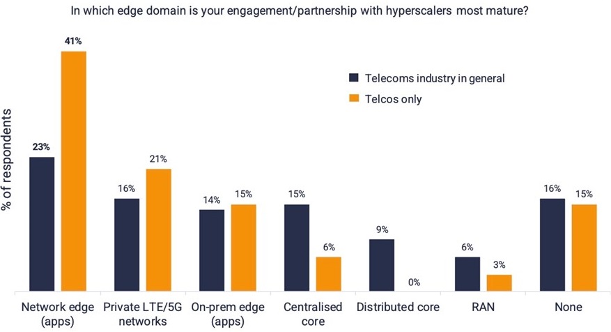 根据 STL Partners 2022 年针对电信行业及电信运营商(Telco)的调研,网络边缘计算和 LTE/5G 专网是排名靠前的选项。