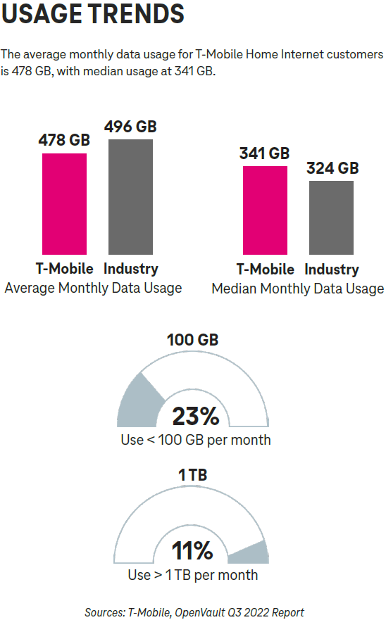 美国 T-Mobile 5G FWA 家庭宽带用户的每月流量 DOU