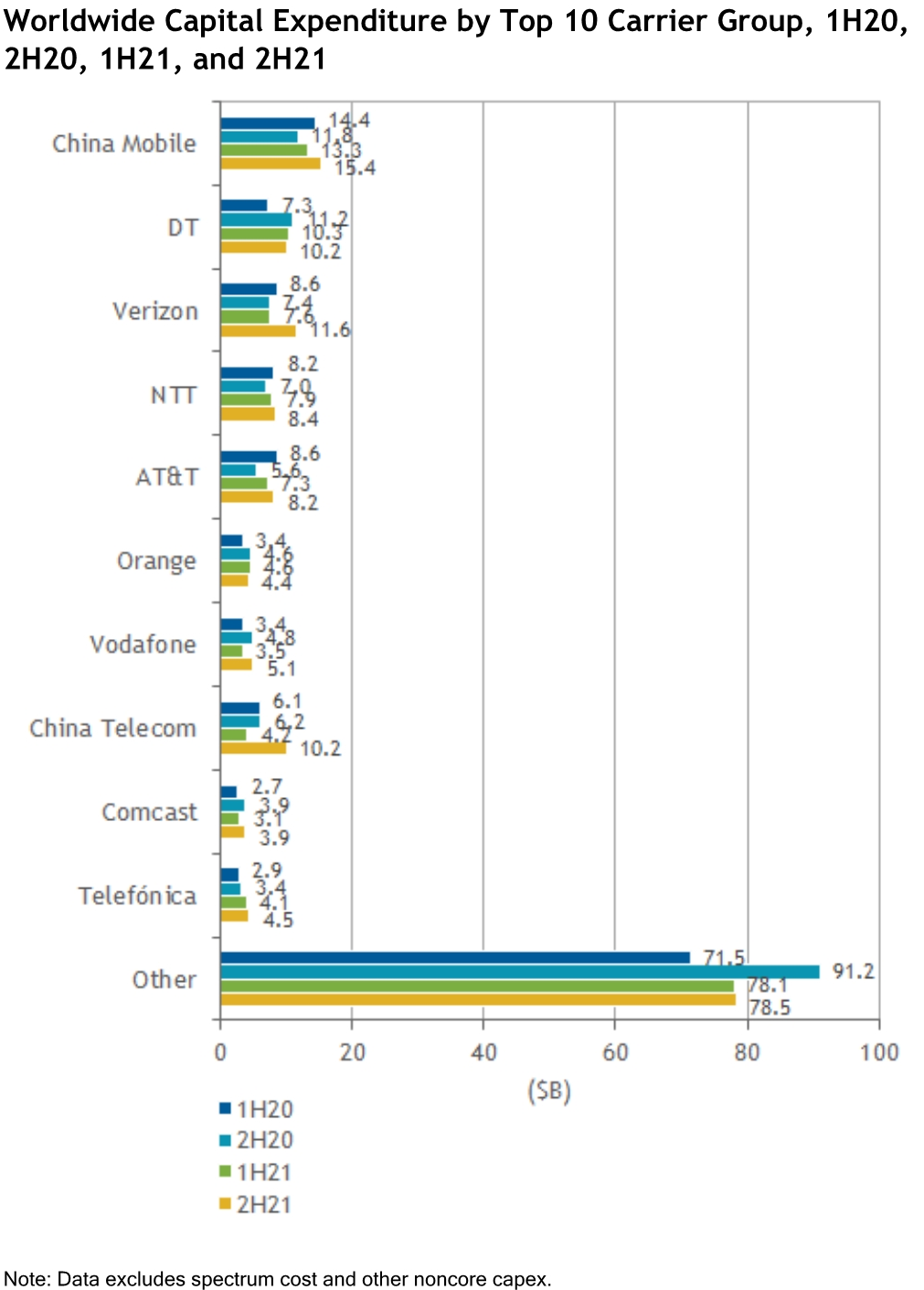 和 GDP 类似,全球电信运营商的 CAPEX 投资也呈现极大的地域差别。