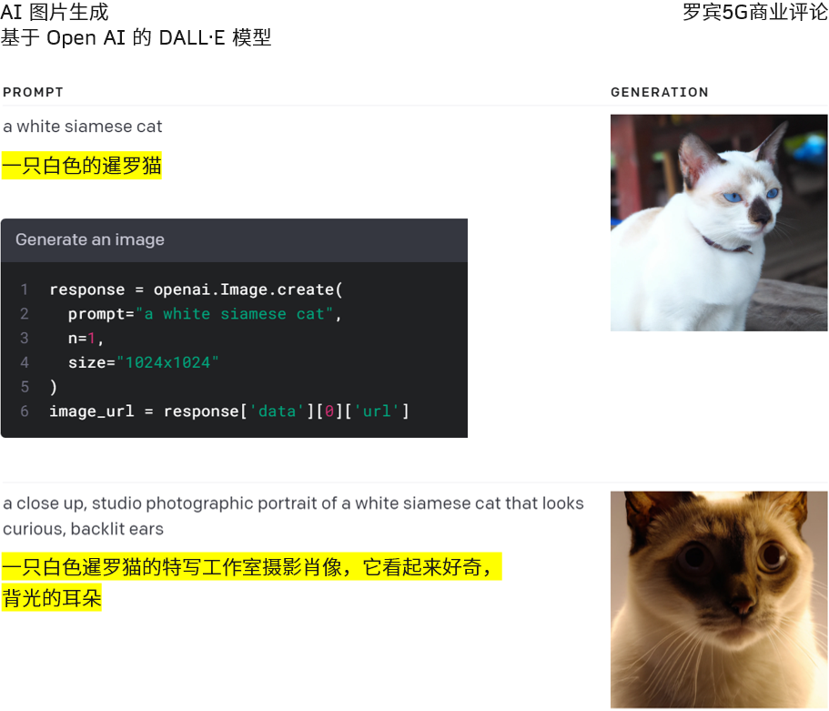 Open AI 的 DALL·E 模型可根据用户输入的自然语言转换为图片。比如,用户输入 “一只白色的暹罗猫”。