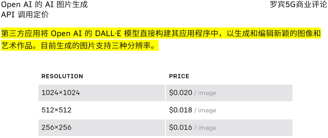 第三方应用将 Open AI 的 DALL·E 模型直接构建其应用程序中,以生成和编辑新颖的图像和艺术作品。目前生成的图片支持三种分辨率。