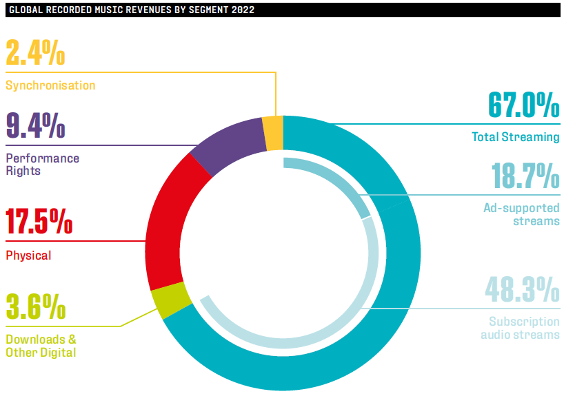 根据 IFPI 的研究,2022 年全球音乐产业收入空间达到了 262 亿美元,连续第二年超过 1999 年的历史位置。