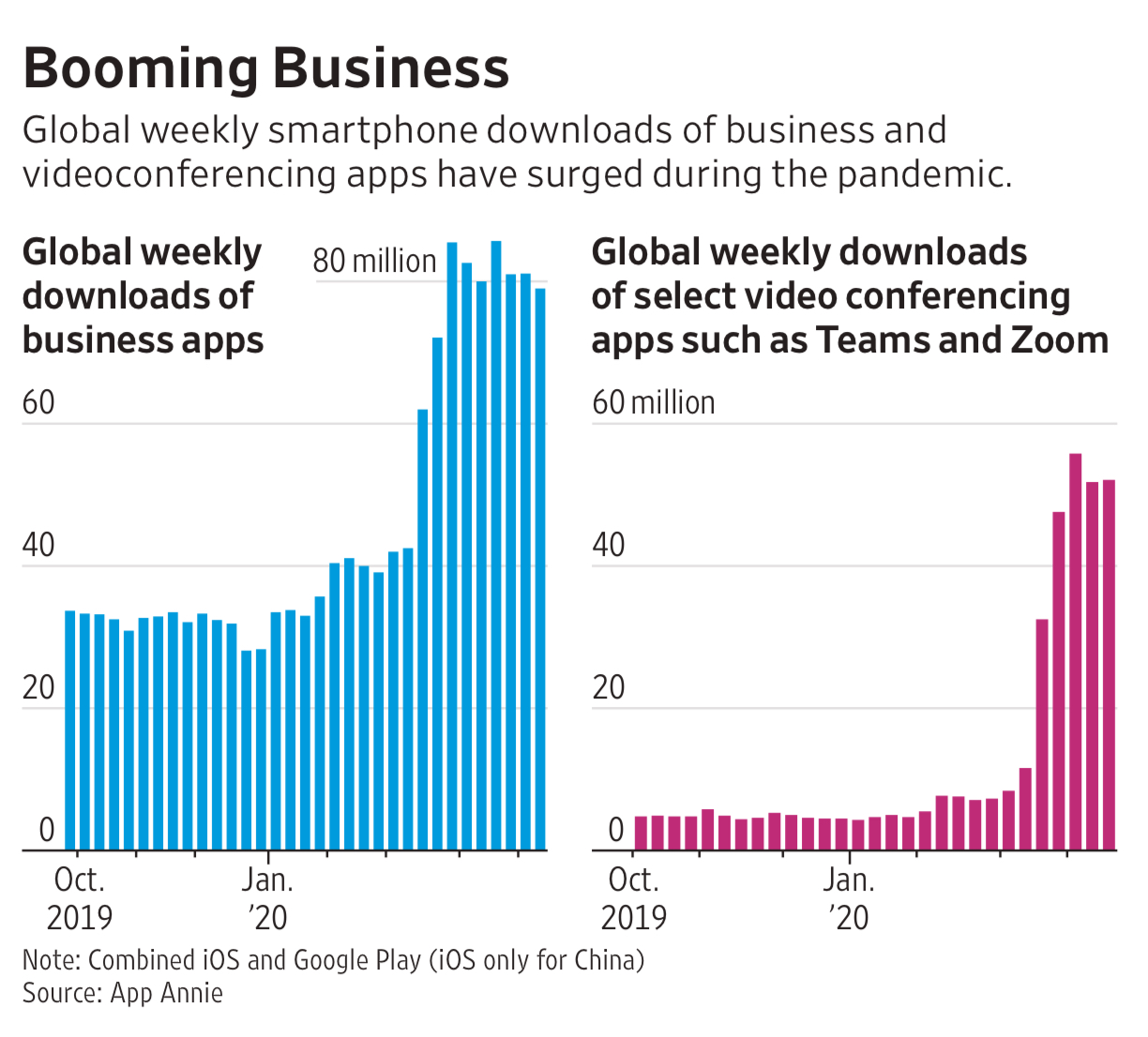 #疫情经济# 商业类 App 的迅速崛起及 Microsoft Teams 的一些数字