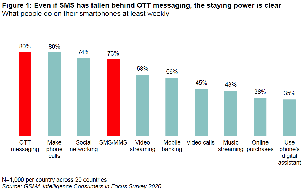 在 OMDIA 针对代表性国家 2022 年消费者调研中,可以看到 Top 2 的沟通工具是 Email 和短信。