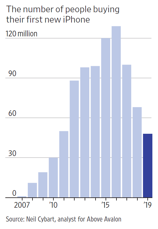 图 2 代表 Apple 的增量客户:2016 年的峰值新增达到 1.29 亿,随后持续下滑到 2019 年的 4800 万。