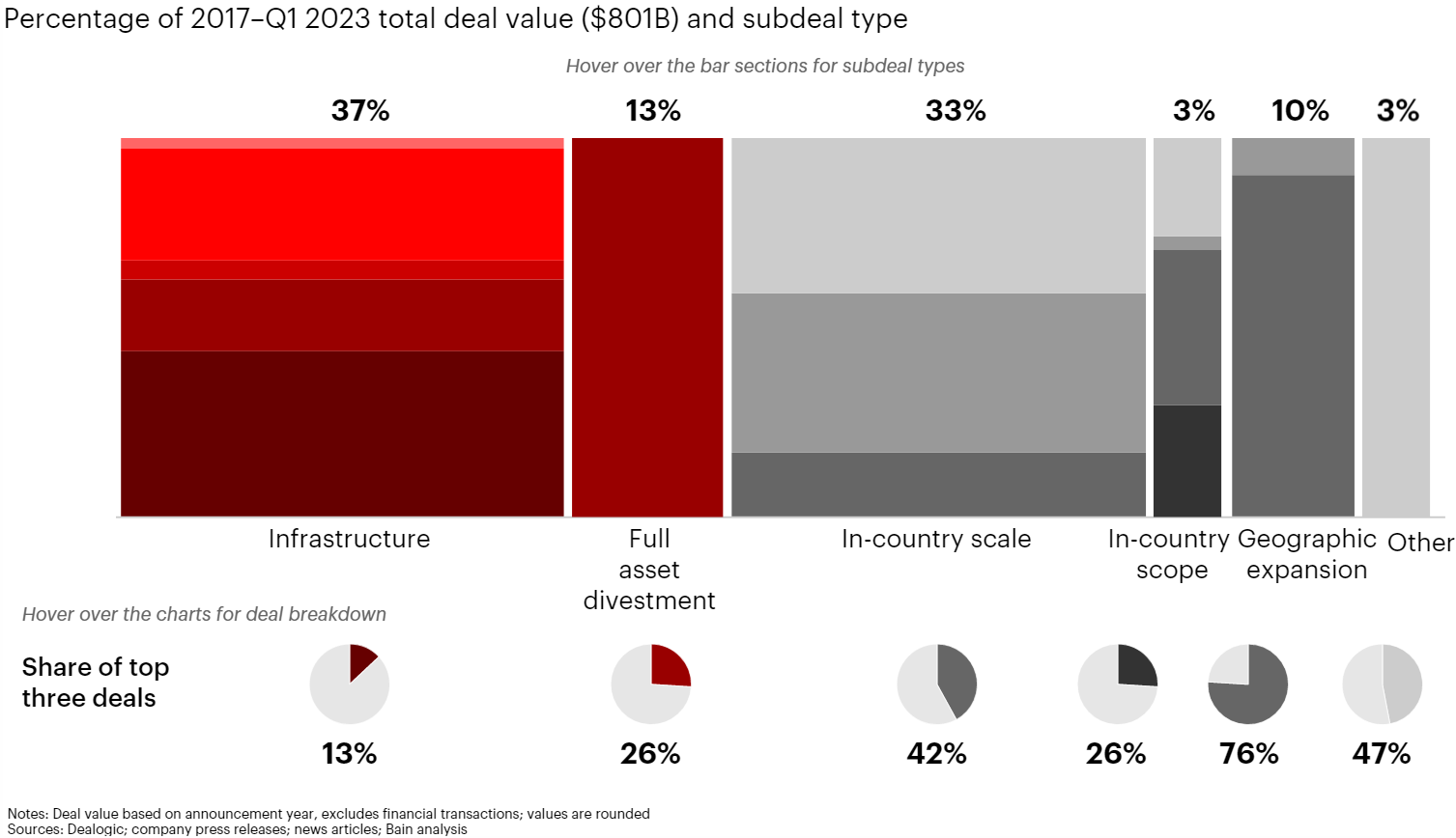 Infrastructure deals 指剥离基础设施、或合并基础设施,主要指铁塔管线和数据中心机房。