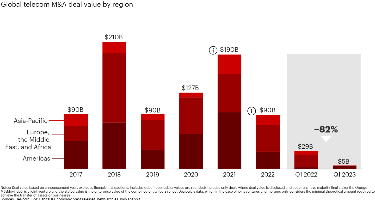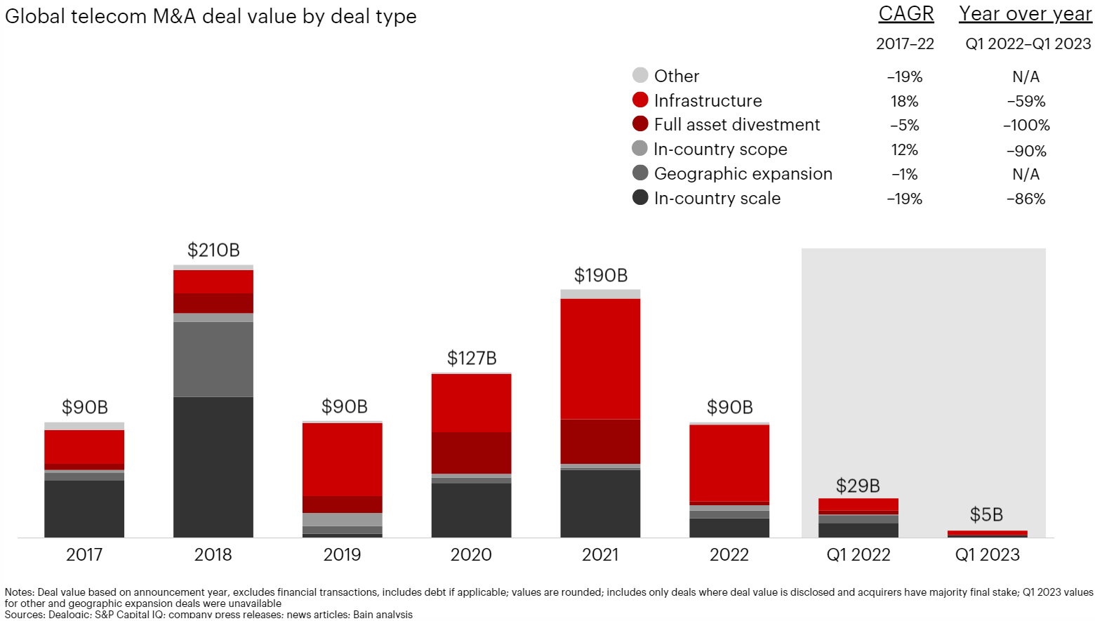 贝恩公司的数据显示,全球电信运营商的投资并购需求呈下滑趋势。