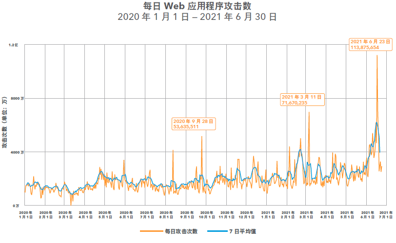 根据 Akamai 的数据观察,2021 年 6 月的一天内观察到 1.138 亿次攻击,是 2020 年 6 月观察到的攻击次数的三倍多。