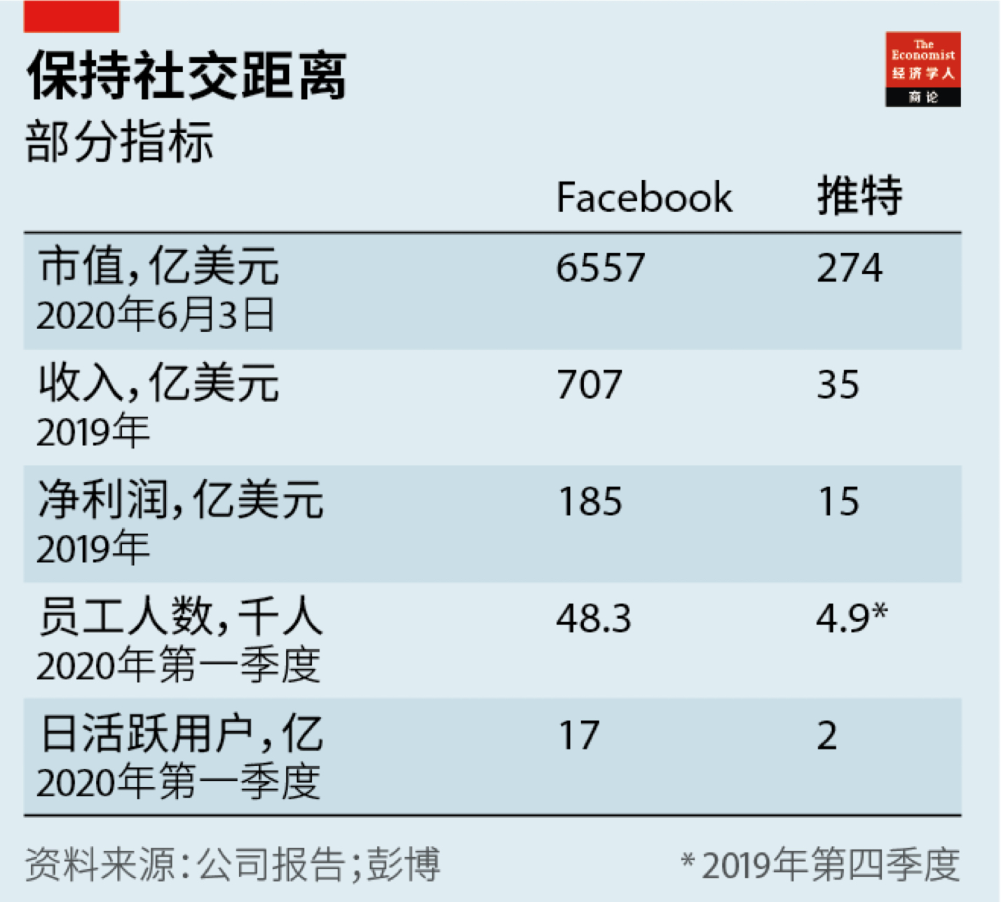 同为全球社交网络的领头羊,Facebook 和Twitter 在公司收入、员工等各方面均呈现了很大差距。