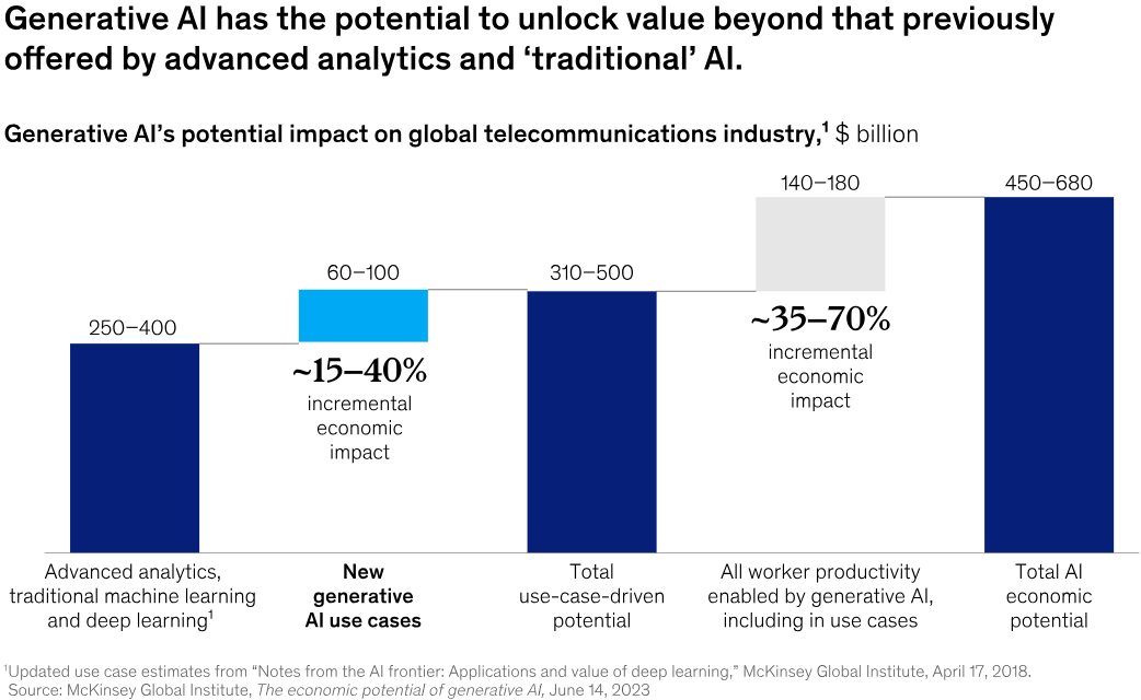 Mckinsey 预测中国有约 2.2 亿个岗位可能被生成式 AI 等自动化技术重塑,其中白领工作受到的冲击将比蓝领工作更大。
