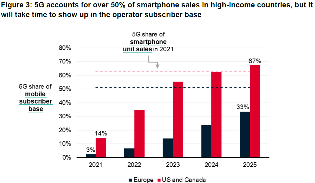 从全球整体看,用户批量切换到 5G 是大趋势,但局部则不尽然。