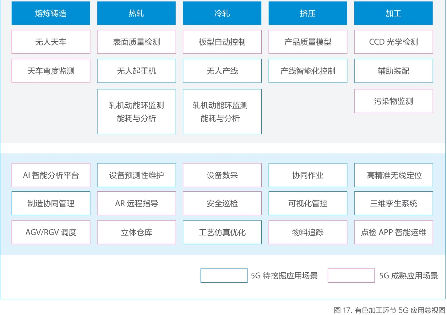 附图是中国铝业、中兴通信和信通院的发布的有色金属行业智能化技术框架和重点创新应用场景。
