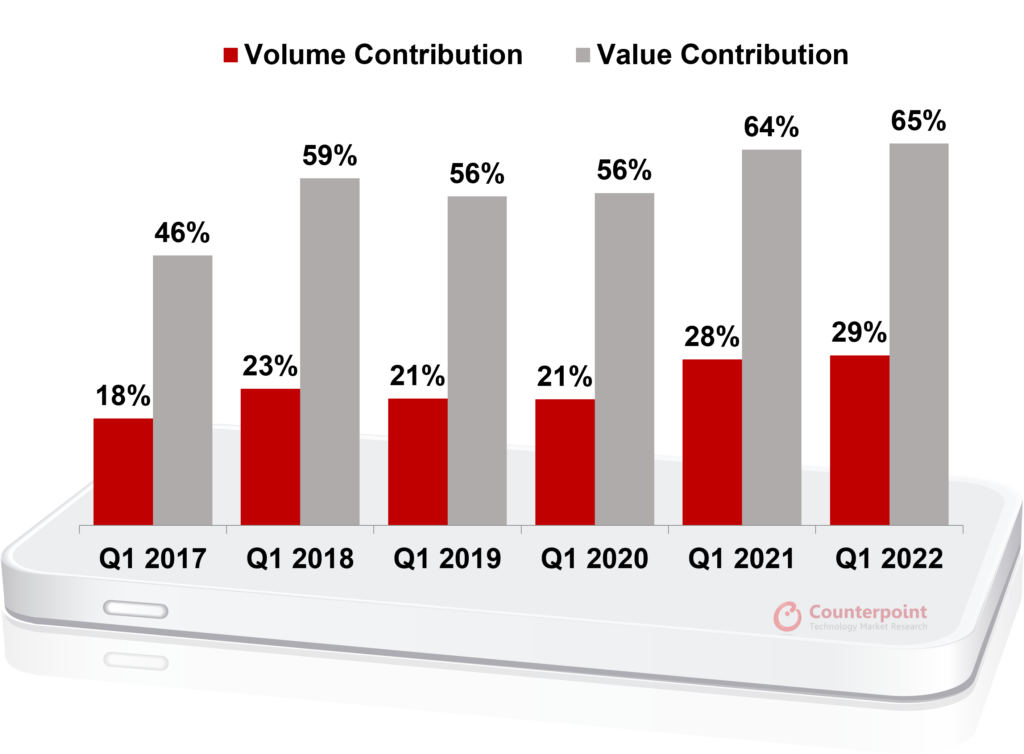与此同时,150-249 美元的经济型手机也会增加 11%。