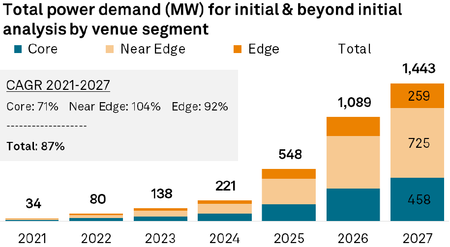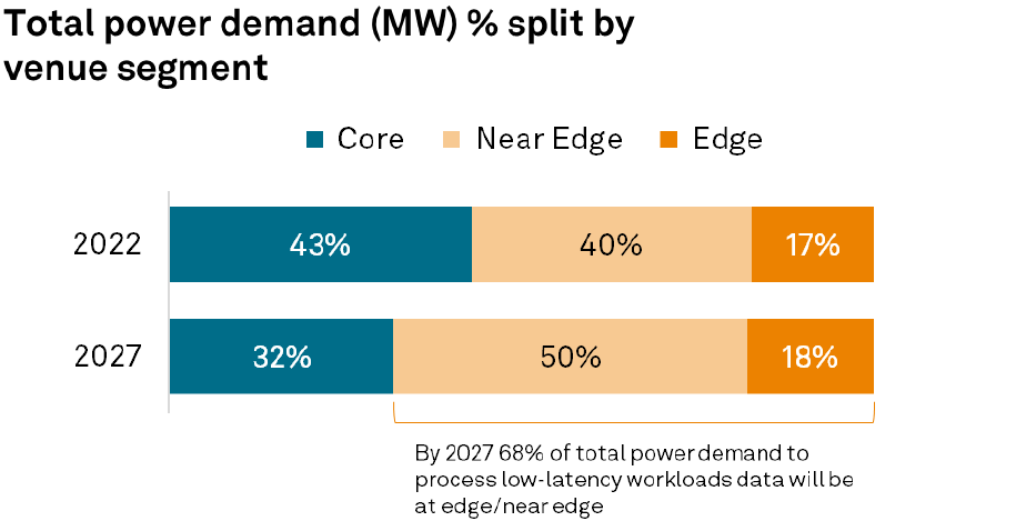 围绕每个位置的能耗(侧面也反映了所承载的计算负载),Near Edge 是比例增长最大的部分,2022 年 Near Edge 占了 40% 比例,2027 年会提升到 50%。