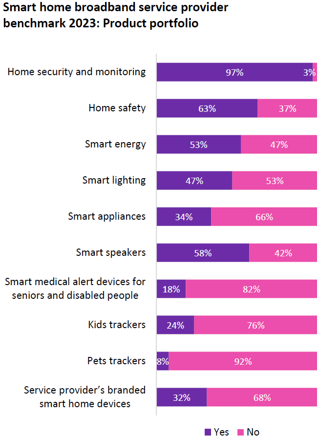 与此同时,有 63% 的调研运营商拥有 Home Safety 产品(家庭防护)。