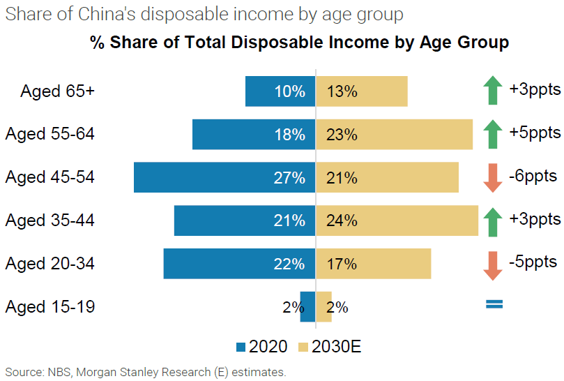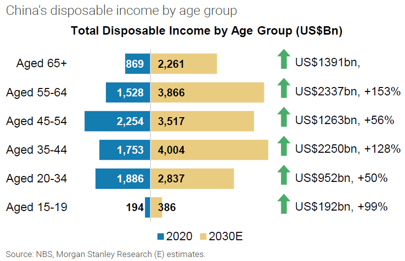 中国不同年龄段可支配收入变化 2030
