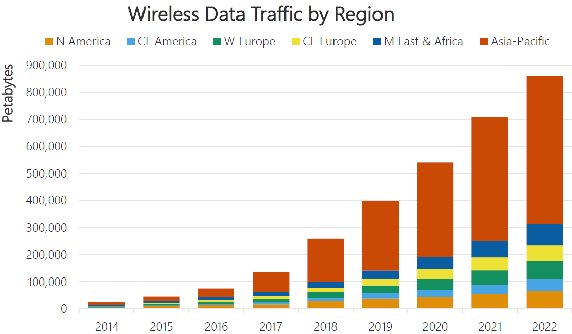 Tefficient 针对全球 105 个运营商进行了研究,汇总了 两个指标:(1) 移动网络流量;(2) 收入增长。