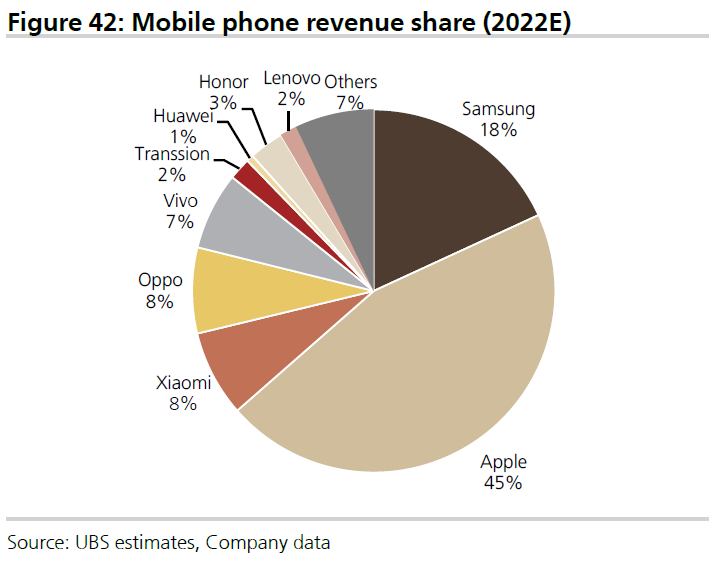 根据 Counterpoint 的研究,欧洲地区 2022Q1 共计销售了 4900 万部,同比去年下降了 12%。