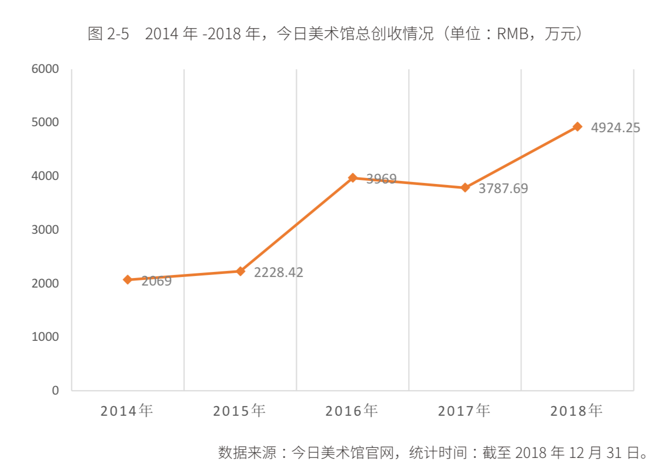 ⑴ 今日美术馆收入从 2014 年的 2,069 万元增加到 2018 年的 4,924 万元;