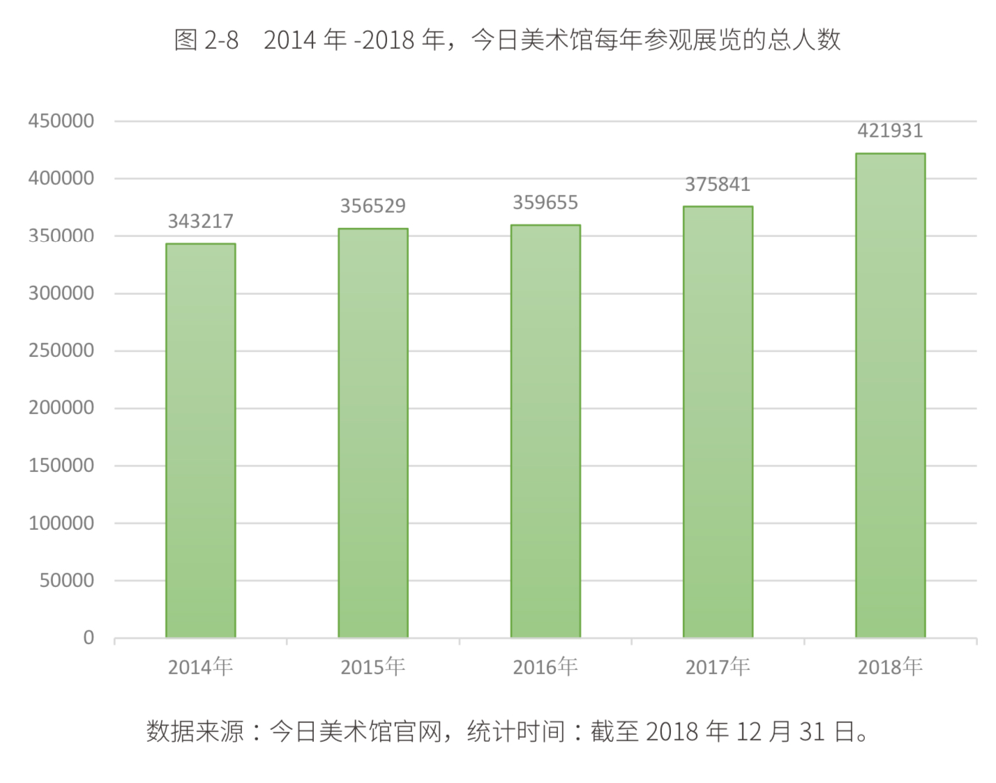 ⑵ 每年参观人数从 2014 年的 34 万到 2018 年的 42 万,相对增长并不大;