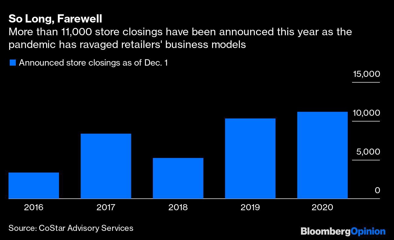 根据 CoStar 咨询公司的研究,截止到 2020 年 12 月 1 日,美国零售商宣布关闭了 11,157 家门店,达到近五年来之最。